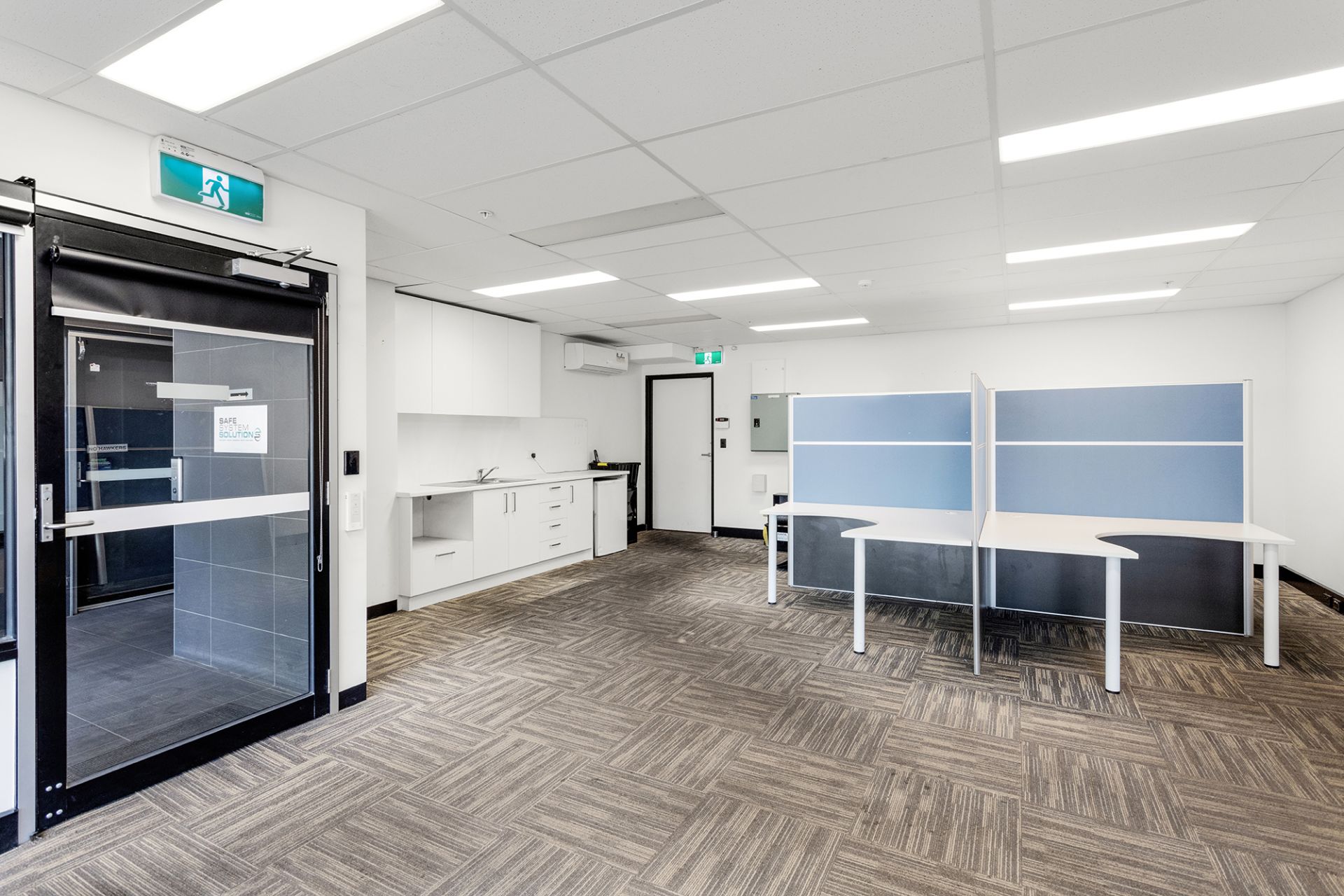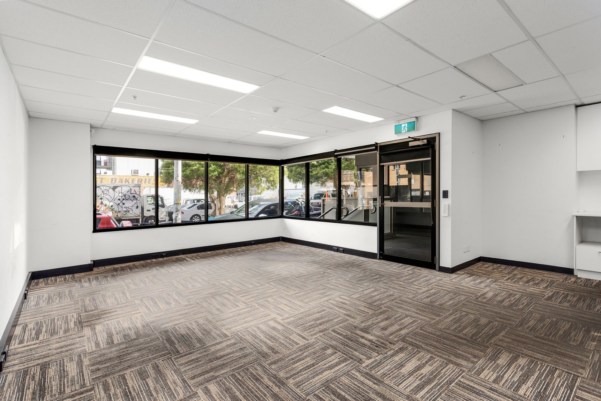 *Carpet tiles can be removed to expose the concrete floor